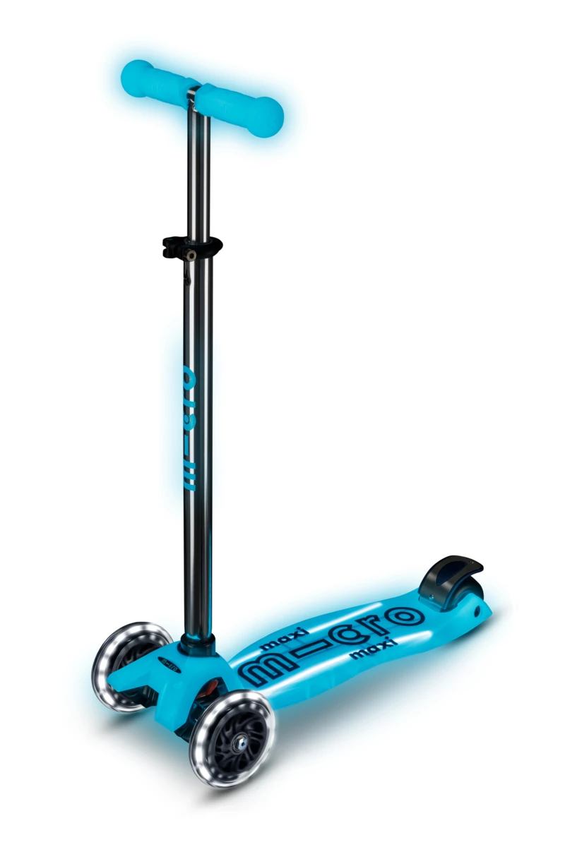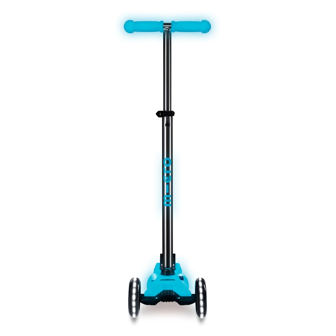 Állítható kormánnyal, rugalmas, megerősített üvegszálból készült, duplán befecskendezett csúszásgátló szilikon logójú fellépővel rendelkezik, amely segít a gyermekek lábának csúszásmentesítésében még nedves időben is. Az innovatív fékrendszer a hátsó kereket fékezi, amely a legkisebb érintésre is reagál. BPA mentes gumimarkolattal szerelt, amely puha, de erős. A defektmentes kerekek magas kopás állóságú poliuretánból készültek a végtelen számú rollerezéshez. A Maxi Micro Deluxe Glow Led Plus rollerek a legfényesebb és legtartósabb gyerek rollerek, melyek fejlesztik a mozgáskészséget, koncentráló képességet, összehangolják a jobb-bal agyféltekét és a nagy motorikus mozgásokat.